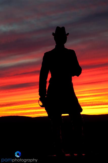 5. Stay Late. I have seen many people pack up after the sun sets below the horizon. Those in the know, stay. The best light is usually the next 30 minutes after the actual sun sets. You will have plenty of time to capture the pink clouds and other color as it slowly moves from east to west. I have found that many times the “best” shot is about 15-20 minutes after the sunset. This is just an estimate. The higher the clouds, the longer the show. One time on Little Round Top at Gettysburg, Mary and I watched the sunset with about 200 people. After it went down, three people stayed – all photographers. The next 20 minutes was the best sunset we have ever seen (see pictures #3-4). Lastly, I know we are watching the sunset to capture a beautiful image, but also remember to have fun and enjoy the show. To see more of our pictures, please go to http://www.pamphotography.com/.