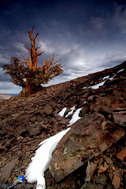 - Composition – especially for landscape and nature photography, a tripod allows the photographer to slow down and think, so that you can “frame” and compose exactly what you want. Edges make a huge difference in composition. When you look at photo 1 of the “Galen Rowell Tree” in the Patriarch Grove of the Ancient Bristlecone Pine Tree Forest in White Mountains in California, can you imagine how bad it would look if I had cut off one of the branches, even a small one?