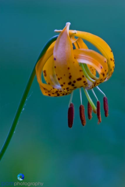 Background: simple is usually better. I try to find a simple background in either a complimentary or contrasting color. Make sure there aren’t any hot spots, or things that are brighter than your flower (reflected dew drops, white sky, etc), in the background or they will be distracting. A tip I saw from Tony Sweet is to create your own background. Take some photos of colorful flowers that are out of focus. This will create a wash of color. Then print them in large sizes so you can place it behind your subject. This way it makes it easy to control the background and what appears in focus (you could shoot your flower at f16 so it is all sharp and the background will still be soft and blurry). The camera settings for this image were: f5.6, 1/4 sec ISO 100, 154 mm.