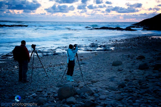 I would sum up the shooting opportunity themes as the following: natural abstracts with simple compositions; rugged shots of rocks and water; beach shots with waves; big landscape coast shots; and of course, sun set photos.