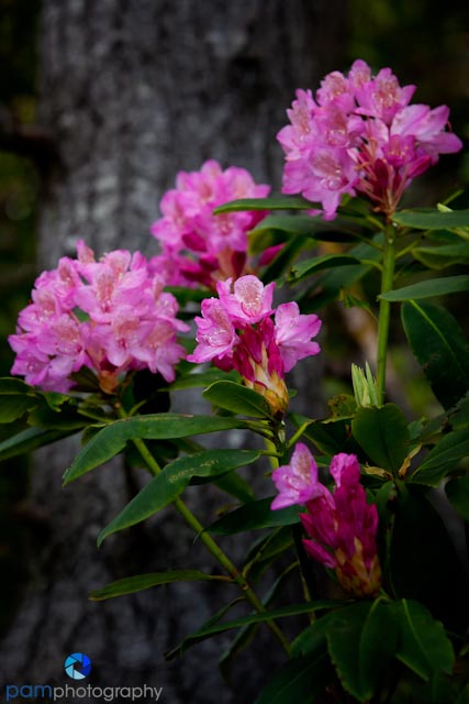 There are Rhododendrons everywhere this time of year. The key is to find some with a good background, out of direct sunlight, and with as little wind as possible. We had a nice morning shoot trying out different compositions.