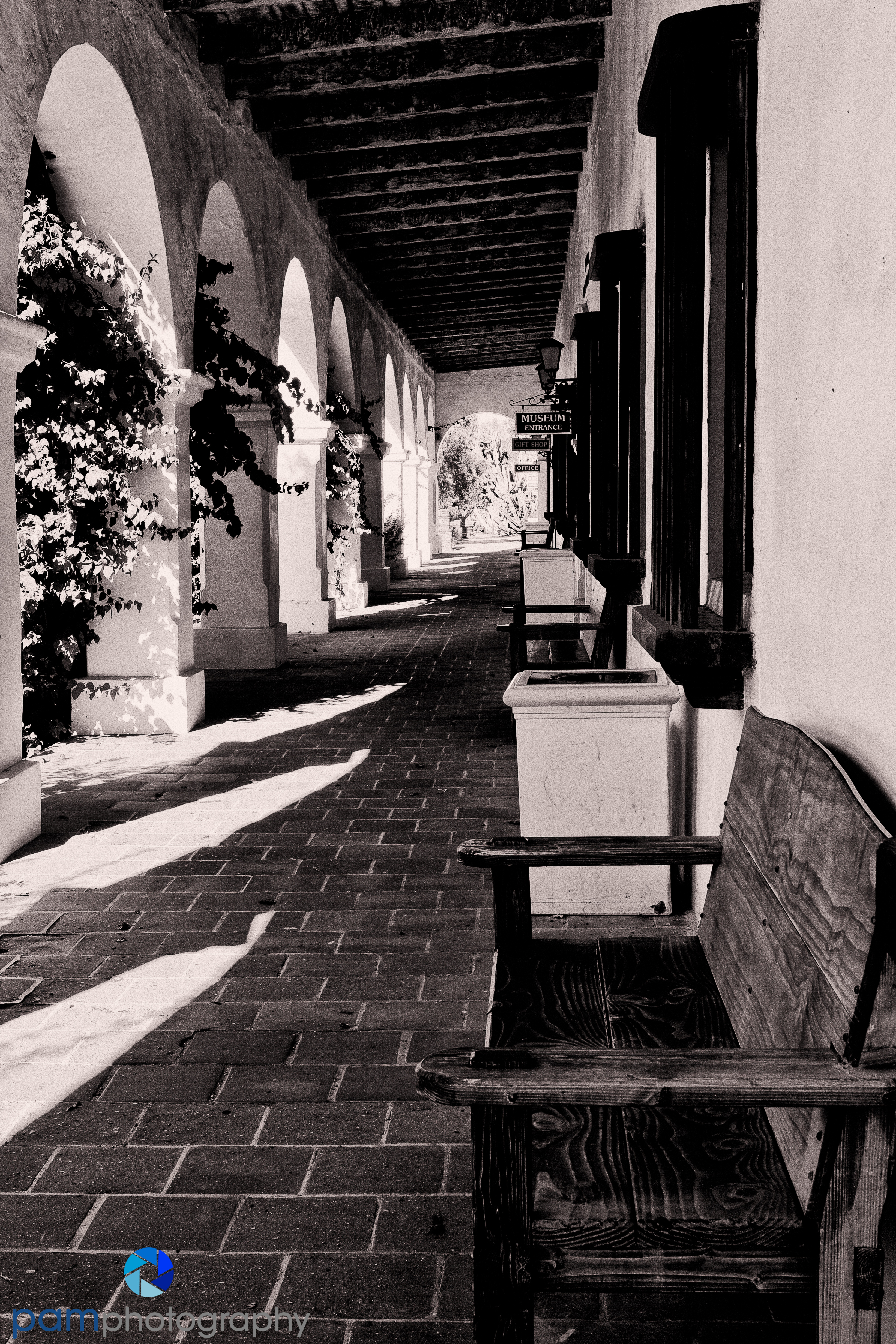 This is probably my favorite subject at the missions. There are so many options. The Portico is sometimes attached to the side of the mission and sometimes is in the back along the large courtyard. Many of the missions we have been to have more than one and in the courtyard go all the way around. This is important as the lighting can be tricky.