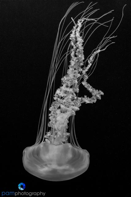 Lastly, there will be many people crowding around you to make their photos and most will be using flash inappropriately. Try to compose your photo away from these flashes, though sometimes I got an indirect light that was helpful. Most people are in a rush to see everything, so I used a lot of patience and just waited for the people to move on so I could get up front and concentrate on composing a good photo. Mary and I probably spent a good 30 minutes just at the jelly fish tanks trying to get a good composition and good exposure.