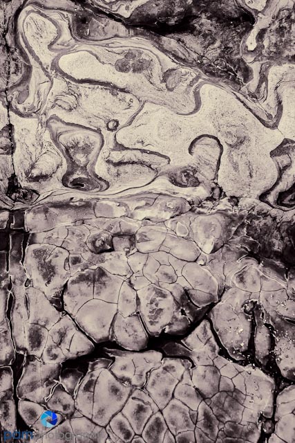 When something captures my attention, but doesn’t have the right formula for a grand landscape (subject, background, light) I stare at it for awhile and try to determine what was so interesting that it stopped and made me look. Then I focus in on that element and subtract out the rest. For example, these three images are of rock patterns on a beach in Point Lobos. We walked down to the beach on a cloudy overcast day. It was tough shooting conditions for grand landscapes, but these rock patterns were really interesting. I zoomed in on them, used Topaz Labs software to convert to a colorized black and white, and then selected three to form a triptych.