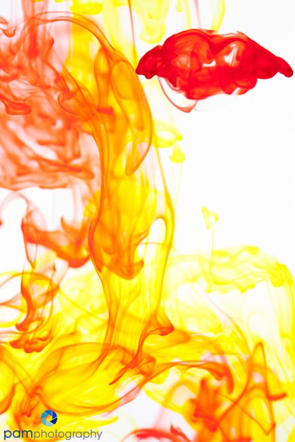 Distilling the subject down to it’s essence usually results in a focus on color or shape; and sometimes if you’re lucky both. A great example is this abstract of the balloons at a balloon festival. There were hundreds of balloons being inflated at the same time on a field that was acres and acres. It was hard to capture this awesome experience from the perspective a grand landscape. I decided to zoom in, and try to capture as many different colors and lines as possible in one frame. In this image I have captured portions of six balloons – it would have had a much different feel if I had zoomed out and tried to capture them in their entirety. I think this image of food coloring floating in water is a good example of combining color, shape and movement. Lastly, is an image of a dew drop on a flower. The soft focus and close range, really emphasizes the purple/green color combination and the shape of the dew drop.