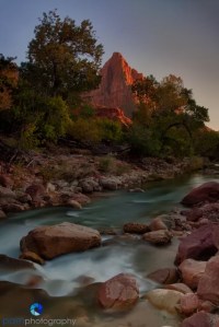We spent three sunsets photographing the Watchman and surrounding area along the Virgin River. There are so many options and different kinds of terrain to suit everyone’s needs. Remember, don’t just plop down your tripod and get the tried and true shot, move around to make some angles; look for interesting and unique foregrounds; and create your own perspective.