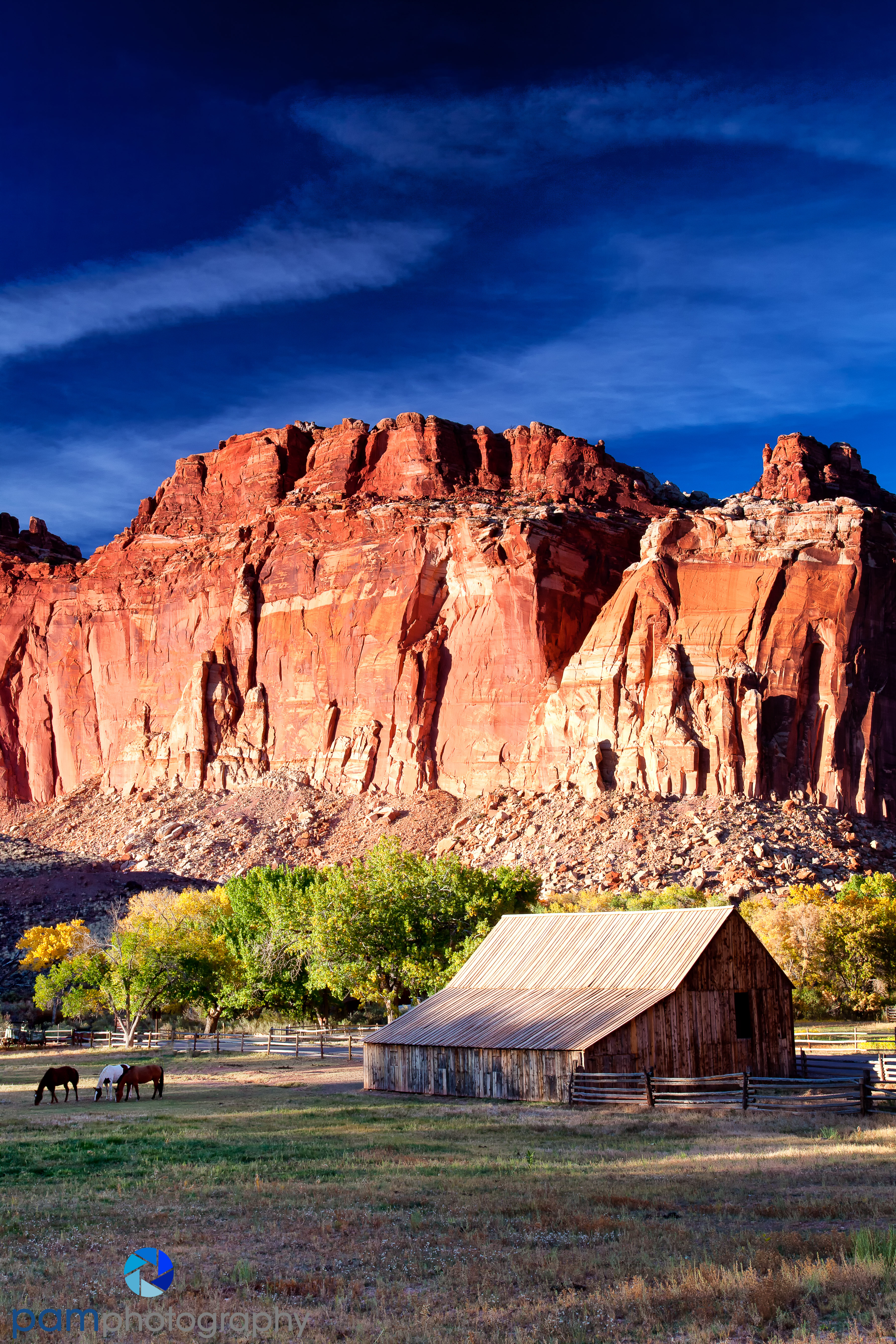 Fruita, the remnant of a 200-acre late frontier settlement, hugs the banks of the Fremont River and Sulphur Creek. Mormon pioneers recognized the site’s potential as a settlement and so they established homesteads and planted orchards in the 1880s. Some of the historic buildings and fruit trees still stand. The current Visitor’s Center is located in the Fruita area.
