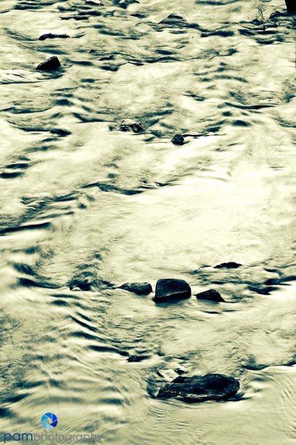 You may remember an image I’ve blogged about in the past – it’s a rushing river image in a gold tone, and I affectionately call it “Liquid Gold”. The image below I took on the same river bank at the same time, but used a blue treatment instead of the red/yellow treatment in Liquid Gold. Both effects are in Topaz’s BW, but each has a very different feel.