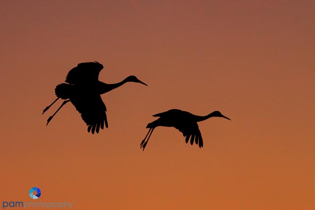 Dusk photography was very interesting and rewarding. Just as the birds take off in the morning from the ponds, they come back at night to roost. They come back one-by-one and in small and large groups. We photographed two sunsets watching the sun go down and photographing the birds as they found their home for the night. Our go-to shot was a silhouette against a glowing sunset.