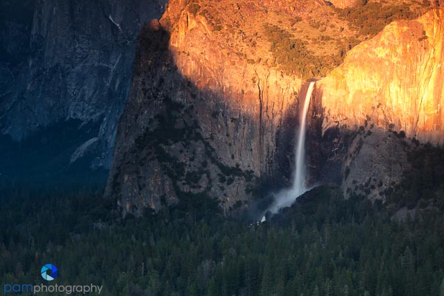 This is the classic shot (see cover photo). This is a sunset spot, so make sure you get there early and position yourself. Believe it or not, I noticed about a 10 foot wide area that was ideal, so don’t just settle on one spot, walk around and get the best angle. There is a nasty tree on your lower right hand side that can disrupt your favorite composition. I finally decided just to zoom in to get rid of it. I am actually surprised that a group of photographers have not felled it already. Watch as the shadow of El Capitan creeps across the valley. Finally zoom in on Bridalveil Falls as the last bit of yellow sunset light illuminates it.