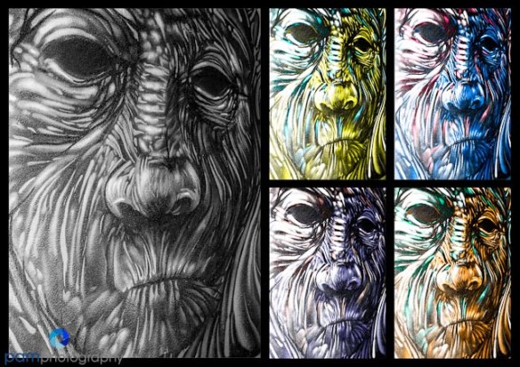 I’m on a bit of a collage kick lately. I am interested in multi-media collage and this small projects seem to be a logical step in understanding how to use software to assemble different images. I live in LA and street art is very common, I especially love murals. I don’t really linger long, but since staring at these images for hours, I’ve discovered they have complex layered meaning (a nice way to engage my mind as I continue to muscle through new techniques using Photoshop).