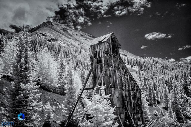 I wish I could tell you there are a bunch of compositions, but I think there are only a few. The photo above was shot from behind the mine facing north. We were there around noon and with this composition, Mary was able to get the mine well lit and used her infrared camera to capture the clouds and Mount Sneffels mountains.