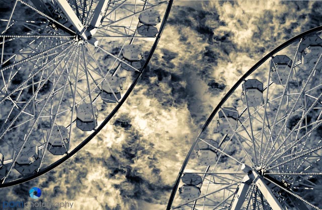 I started with some old still life and architecture images, and pretty soon started playing with ideas of symmetry rather than mimicking double exposures in camera. Having some photos of blue skies with clouds also helped serve as backgrounds while I was compositing.
