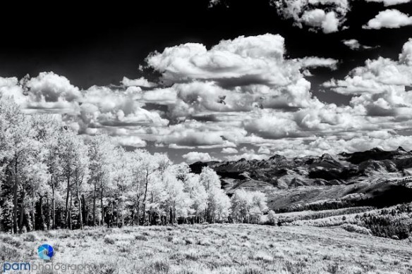 On our last trip to Southwestern Colorado (Ouray, Telluride, Ridgway, and Silverton), we shot mostly between 9 AM and 1 PM. We missed sunrise because it was more of a family vacation and we generally slept in. We missed sunset because of afternoon thunder storms and happy hour. If you are going to be a middle of the day photographer, you have to think in “black and white.” Mary shot mostly with her infrared camera and converted her “digital negatives” into black and white by processing them in Lightroom, Photoshop, and Nik’s Silver Effects Pro 2. Here are some of her best ones.