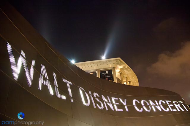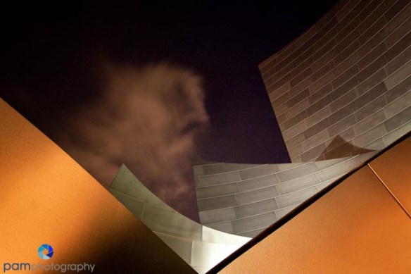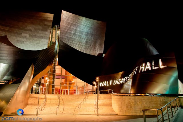 Walt Disney Concert Hall is the most interesting building in downtown LA, if not in all of CA, and is considered a Frank Gehry icon throughout the world. It is quite a sight in the middle of the day, but can be hard to photograph because of its metallic skin. Mary and I decided to photograph it at night in all of its glory. Here is what it looked like.