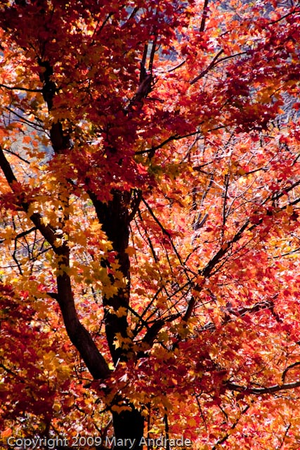 Sometimes, the subject of the photo is simply the “color.” The cover photo of this blog was taken in Napa Valley on a rainy day. As we sped down the Silverado Trail, Mary shouted, “stop the car,” and shot the photo from the passenger seat with her Canon s90. The leaves were all wet and it was fall, making the colors deep and saturated.