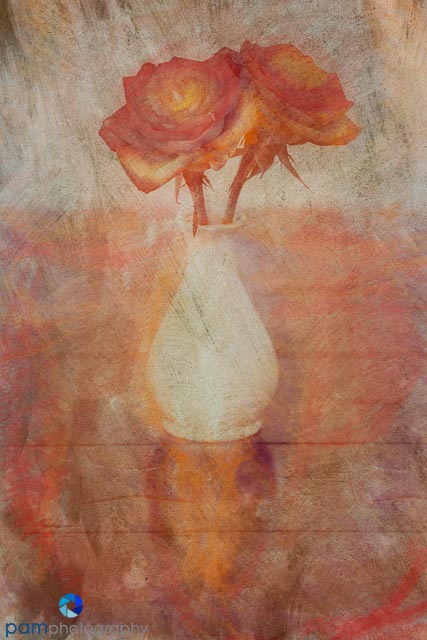 I read about this technique in the February edition of Digital Photo. It involves creating a layer mask with in imprint of a photo on it. Then placing it over a texture, and painting color on a transparent layer connected to the mask. It sounds more complicated than it is.