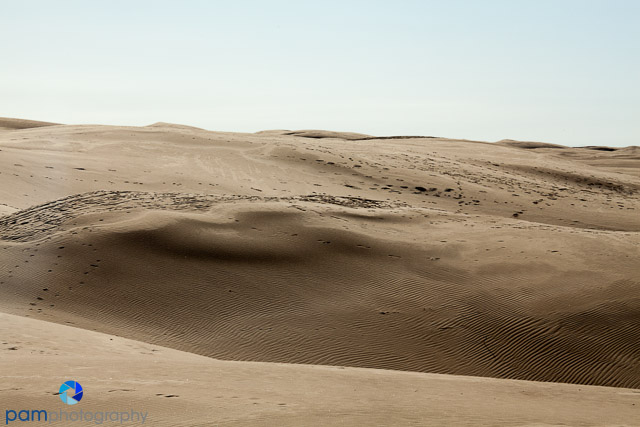 One fun thing about the Oceano area is you can drive your car on the beach and right up to the dunes. We recommend that you drive along the beach and park just south of the Arroyo Grande river crossing. Walk east away from the beach over the tall dunes and grass and shrubs to see the dune field. Our assumption was that there was not much wind recently and the dunes were full of foot prints. Make sure to explore and walk around, but be aware of where you are stepping. The safest thing to do is follow in someone else’s foot prints.