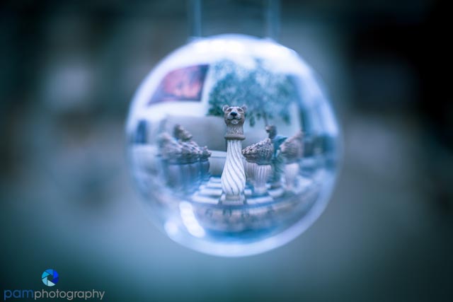 This week I decided to break out a prop- a crystal ball (which raised Peter’s eyebrows when he watched me ginglerly carry it through the house, and attempt to carry it on a walk). I love experimenting with refraction through glass, water, whatever substance will distort a subject….this week’s project was right up my alley.