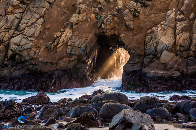 Big Sur is a destination spot, so it can be both desolate and crowded depending on the season. Pheiffer Beach is easy to get to and has a decent sized parking lot. It is a short flat walk to the arch. There is plenty of space and no one perfect spot. I have seen good photos from both the left and right sides and most of the tourists line up right in the middle. Fun and easy.