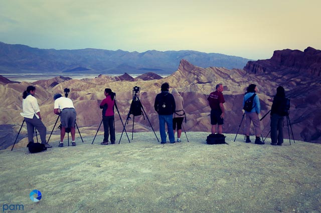 With each minute more and more people showed up and all of the good positions were gone. Mary walked away for a moment to shoot east and an eager photographer starting running toward her spot with all of his gear dangling around him. It took both Mark and I to physically get in his way and use our outdoor voices to tell him the spot was taken for my wife. It could have gotten ugly, but with the two of us, I think we could have taken him. He slumped his shoulders and turned away to take a spot to the right of us, but clearly inferior. By sunrise there were nearly 100 people at Zabriskie Point jockeying for position. Some moved about constantly and others just held their ground.