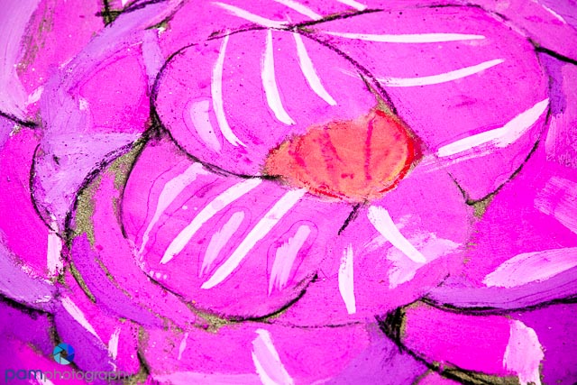 Photo note: wait a couple of hours after the festival has started. This will give the artists time to put down the base color and start drawing the shapes. Timing is important; sometimes capturing the drawings mid-stream is more interesting than capturing the finished product.