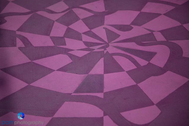 These next two images I took at Disney’s California Adventures. One was a pattern in the sidewalk, the other a design on a temporary wall that was hiding construction. In both of these I changed not only the shape, but also the color.