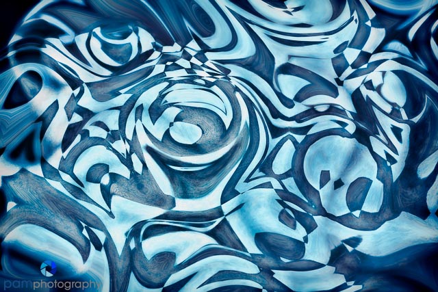I am one of those perplexing individuals, who will see my husband standing in front of a beautiful brick wall, and instead of taking a picture of him, I will ask him to get out of the way so I can take a picture of the wall. This happened recently when we took the girls to the aquarium. People were taking pictures of the fish, sharks, seahorses, and I was taking pictures of the ceiling looking for source materials for abstracts.When I look for source material, I am usually looking for interesting lines and shapes. These reflections in the shark tunnel captured my imagination.