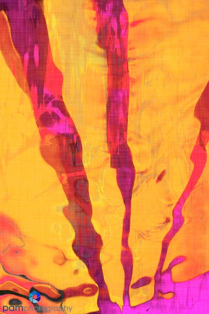 I liked the colors and thought the lines created a bold graphic. I started by experimenting with changing the shape. I swirled, I pinched, I even modified the image using a Picasso cubism effect. But I kept coming back to the original shape. So next I played with color and texture and got this result.