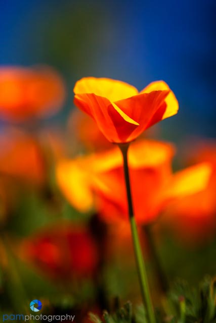 - Find angles that allow you to photograph the orange/yellow poppy against the blue sky.
