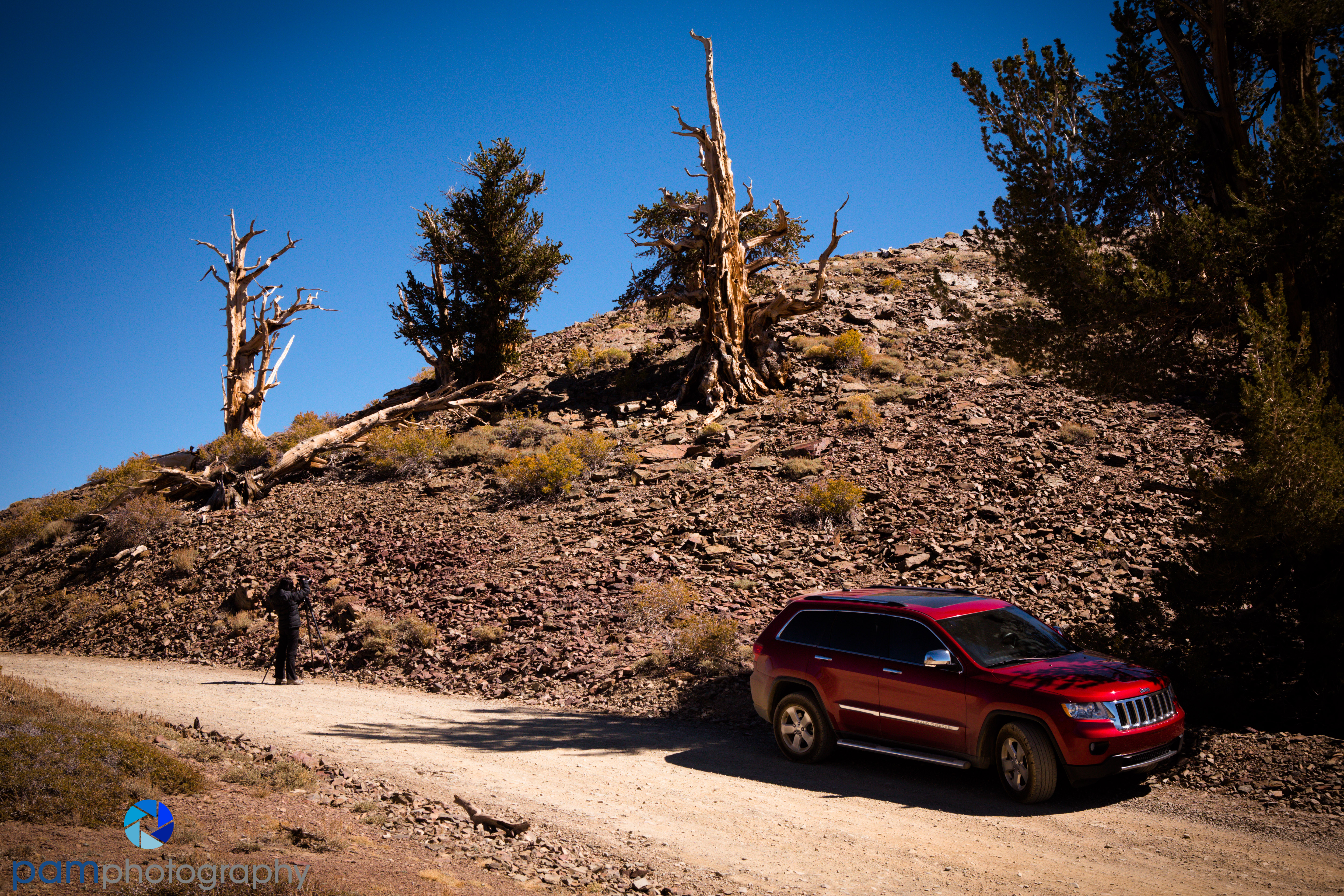 There are a few “stands and groves” in the forest. First, go to the visitor center and hike around the few trials there. You can see and photograph the Methuselah tree after a two mile hike (I do not think it is a very pretty tree, myself). An easier routine is to take the dirt road another few miles to the “first parking lot” on your left. Walk back a couple hundred yards and you will have a chance to photograph 3-5 terrific trees and an interesting downed root system.