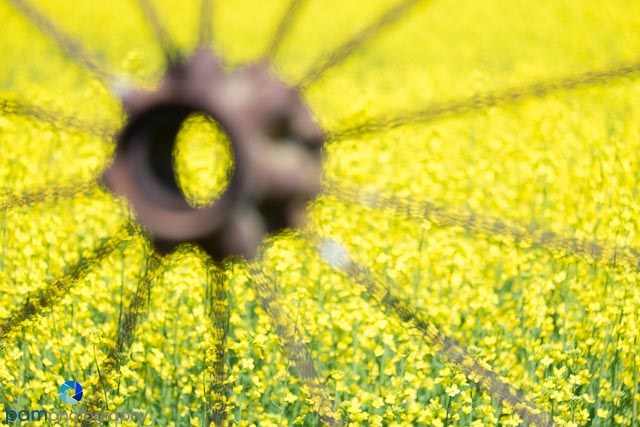 Defocusing: We had a couple of hours at the Dahmen Barn to photograph the famous “wheel fence”. At first I had trouble finding the zone, so I began working with blurs (which didn’t work well) and then moved to capturing the sculptural shapes of the wheels against the flowering canola. The key here is to determine if any of the flowers should be in focus or whether to defocuse the entire image. I went with the former for this frame.