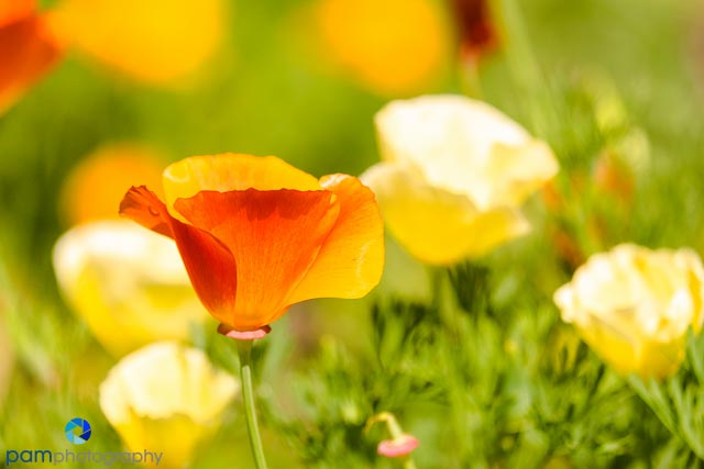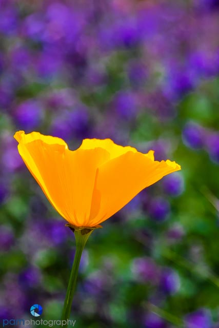 I was delighted to have an opportunity to photograph poppies since we haven’t seen many of them in California, especially with such a fabulous purple in the background to contrast against the yellow.