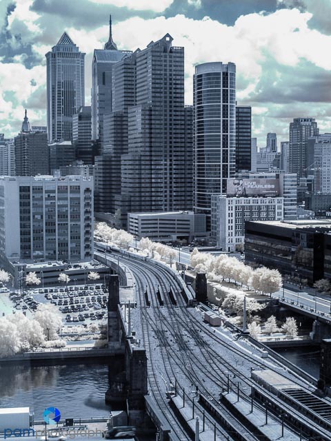 ….by throwing some creative processing, telephoto captures, and even shooting through a screen into the mix. I used Peter’s compact infrared, and tried some of the processing techniques I learned in Nevada Weir’s workshop. I was fortunate enough to be in a building that offered views of the Philadelphia skyline, and then had to leave my perch at the end of the day and to find a different angle among the railroad traffic and highway entrance (and luckily neither me nor my new teammates were injured).