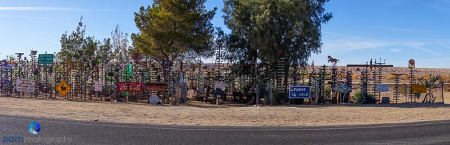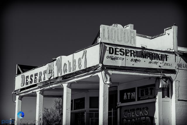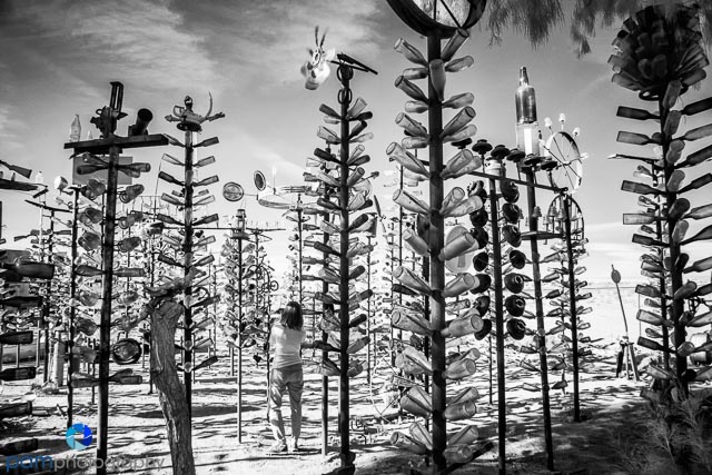 These signs are in Barstow. The bottle tree forest is in Oro Grande, CA. Mary shot in color and I shot in infrared so we had good variety. We wanted to use our tripods, but this is more like street photography and we had to walk around a lot and try to get the right angle, so we mostly hand-held. A flexible zoom lens works well here. I used my Canon 24-105 mm on a full frame sensor and it gave me all I needed. Mary is building a large Route 66 library. We used these guidebooks to plan our trip: “Route 66 Adventure Handbook” by Drew Knowles and “EZ 66 Guide for Travelers” by Jerry McClanahan. To see more of (and buy) our photos, please go to www.pamphotography.com.