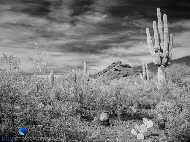 We both shot mostly with our infrared cameras, but we also carried our Sony RX 100 point and shoots. We went to the Desert Botanical Garden in Scottsdale and the McDowell Sonoran Preserve. Both of them had great examples of Saguaro cactus.