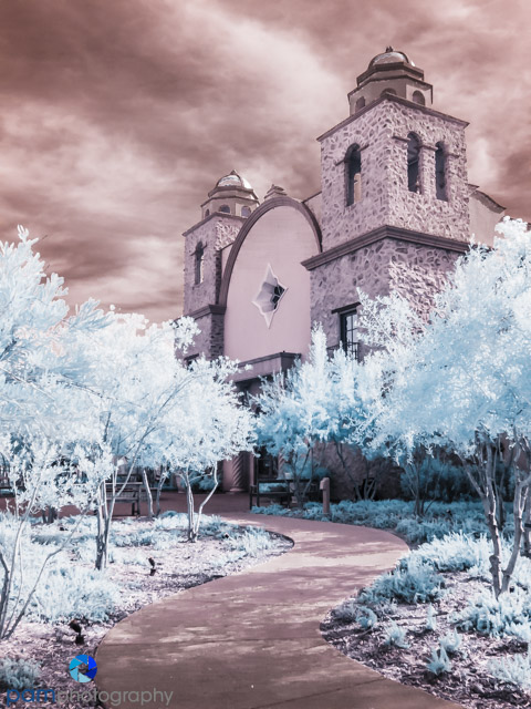 Mary and I spent last weekend at the Ponte Vineyard Inn in Temecula, CA. It has a great new facility, great restaurant, and nice wine. This was not a “photography” trip, but we did manage to get out and around the place and had some fun with our infrared cameras. Here’s what it looked like.