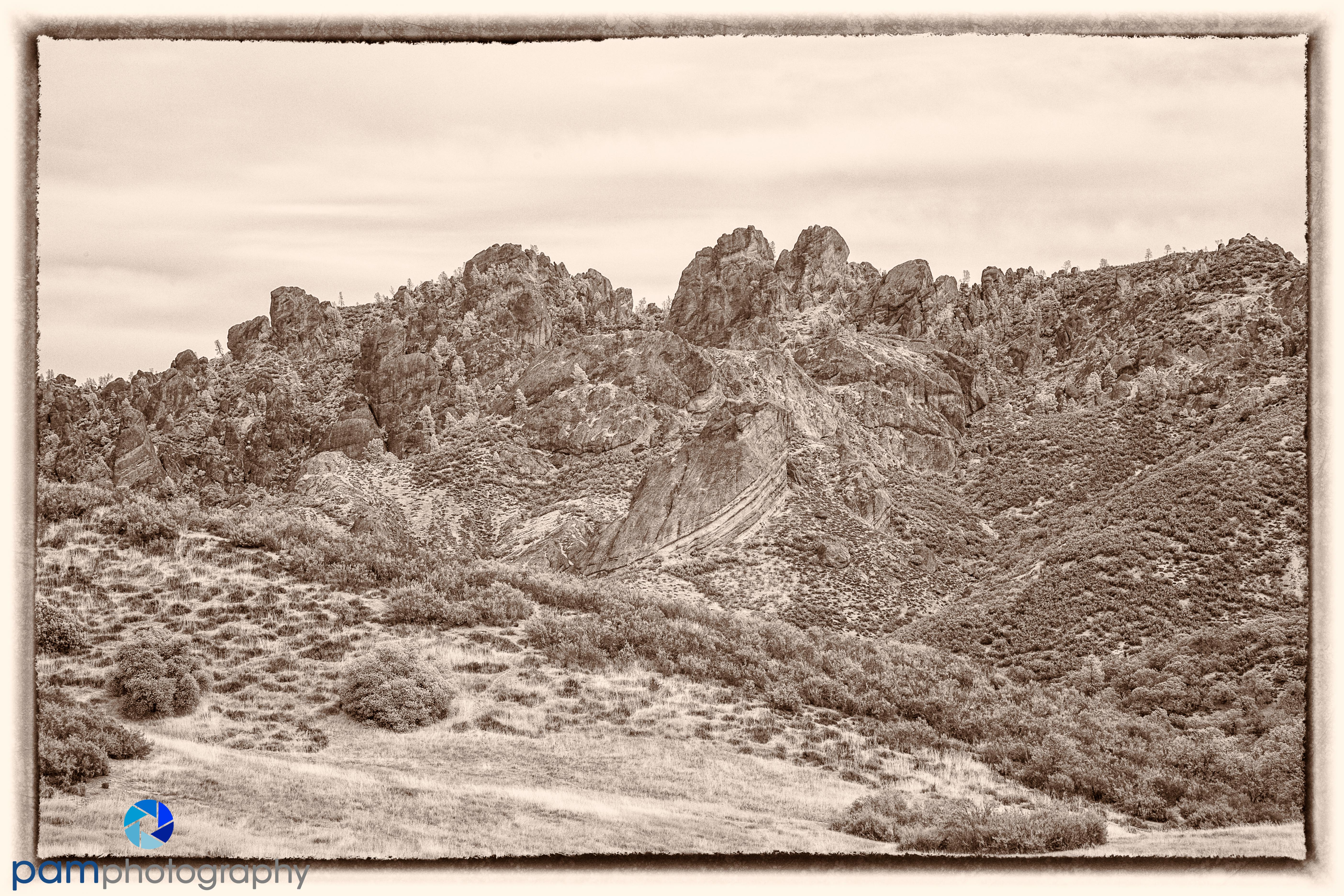 Because it was mid-day shooting and there was not a lot of color in the sky, in the vegetation, or the rocks, I thought an old fashion monotone treatment would look best.