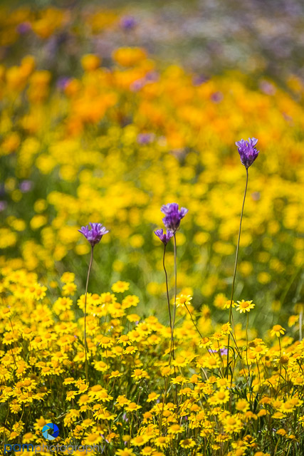 When Mary and I were at Diamond Valley Lake last month, we saw a nice patch of mixed flowers on a rise with a nice blue sky and puffy clouds in the background. Unfortunately, the hill was steep AND, you should not be climbing into the flowers.