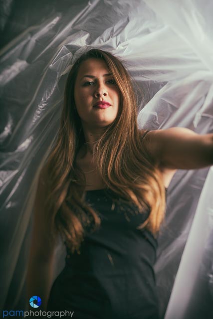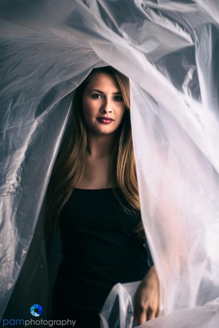 I always plan a portrait session when the girls visit. They are usually game to give things a try, and sometimes they walk away with an Insta pic to post. This time I was inspired by a YouTube video by Gavin Hooey. He used a plastic dust cover bought at the dollar store. As with most videos, it was a lot harder to execute than it seemed.