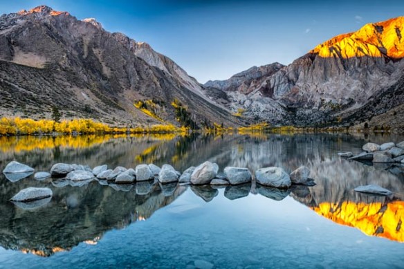 We just stayed in Bishop for a long three day weekend to capture fall color in the Eastern Sierra Nevada, the first weekend in October. We made photos at Convict Lake for two sunrises. Thankfully, it was not that cold and not that crowded. Here is what you might see.