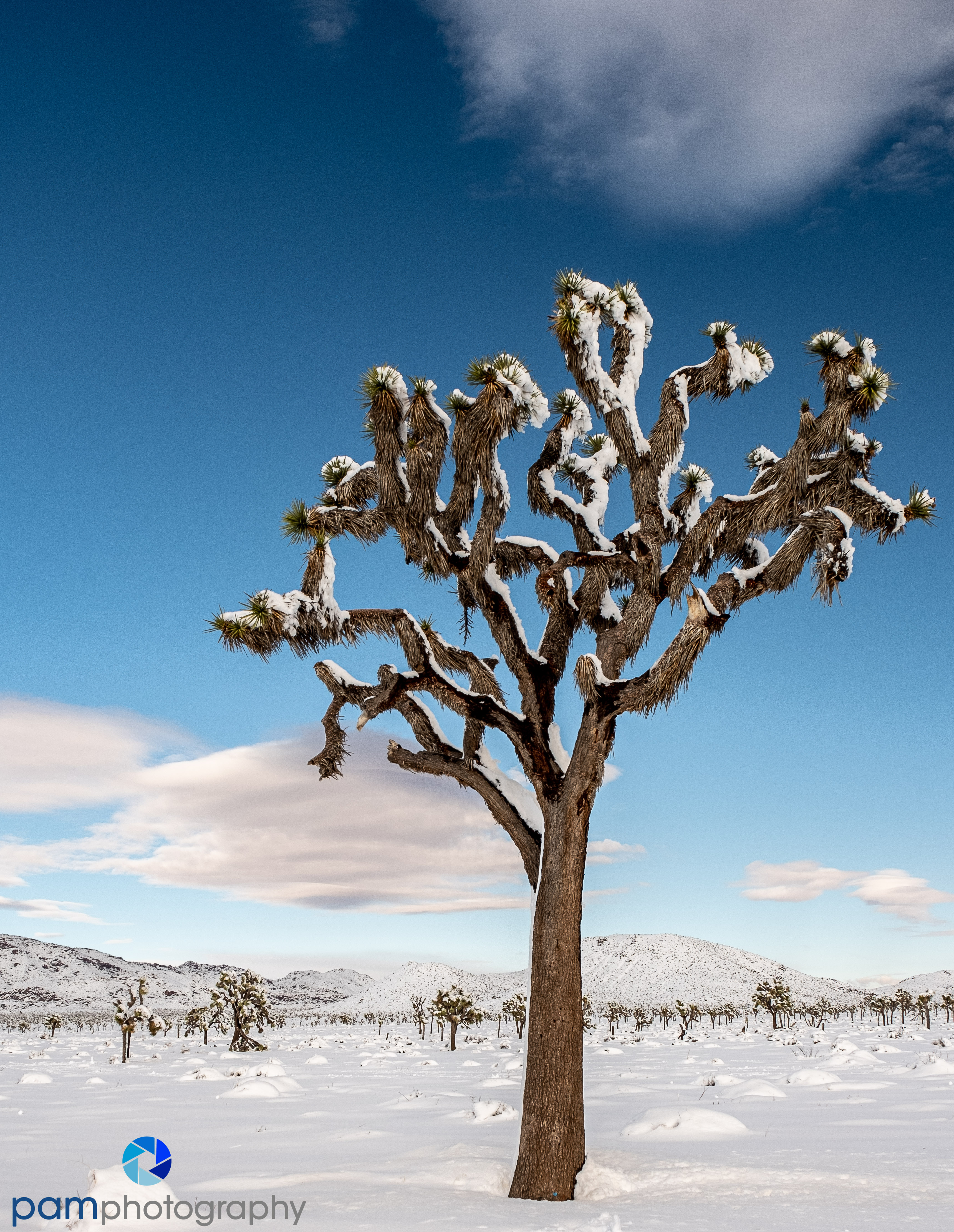 The large storm during Christmas week left many parts of the Southland flooded or covered in snow. The mountains look great. Mary and I made an impromptu trip out to Josh because we knew it had snow. What an incredible and unique sight. Here is what it looked like.