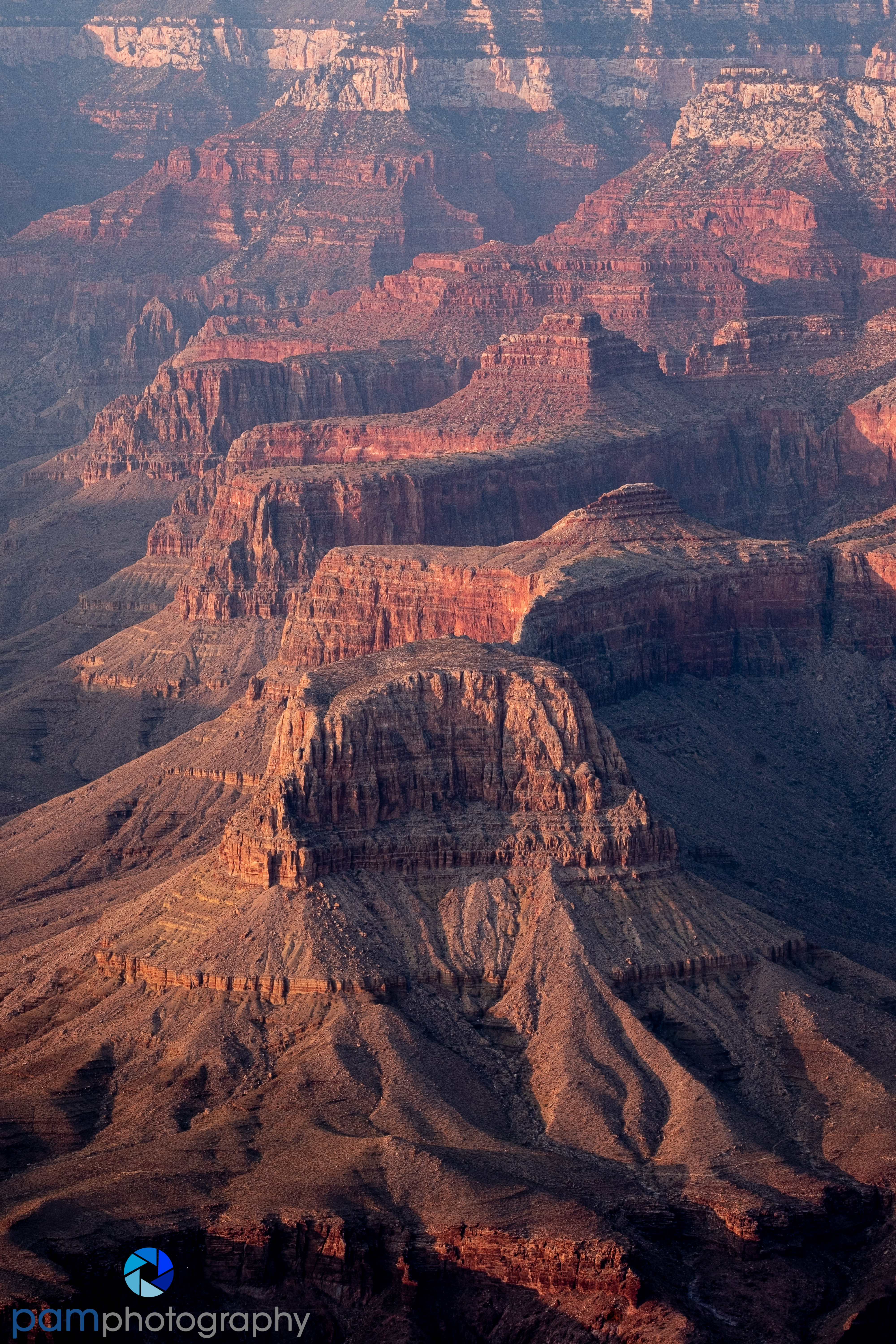 Because we had bald skies most days, it was useful to make tight compositions of canyon features with a short telephoto lens and just leave out the sky.