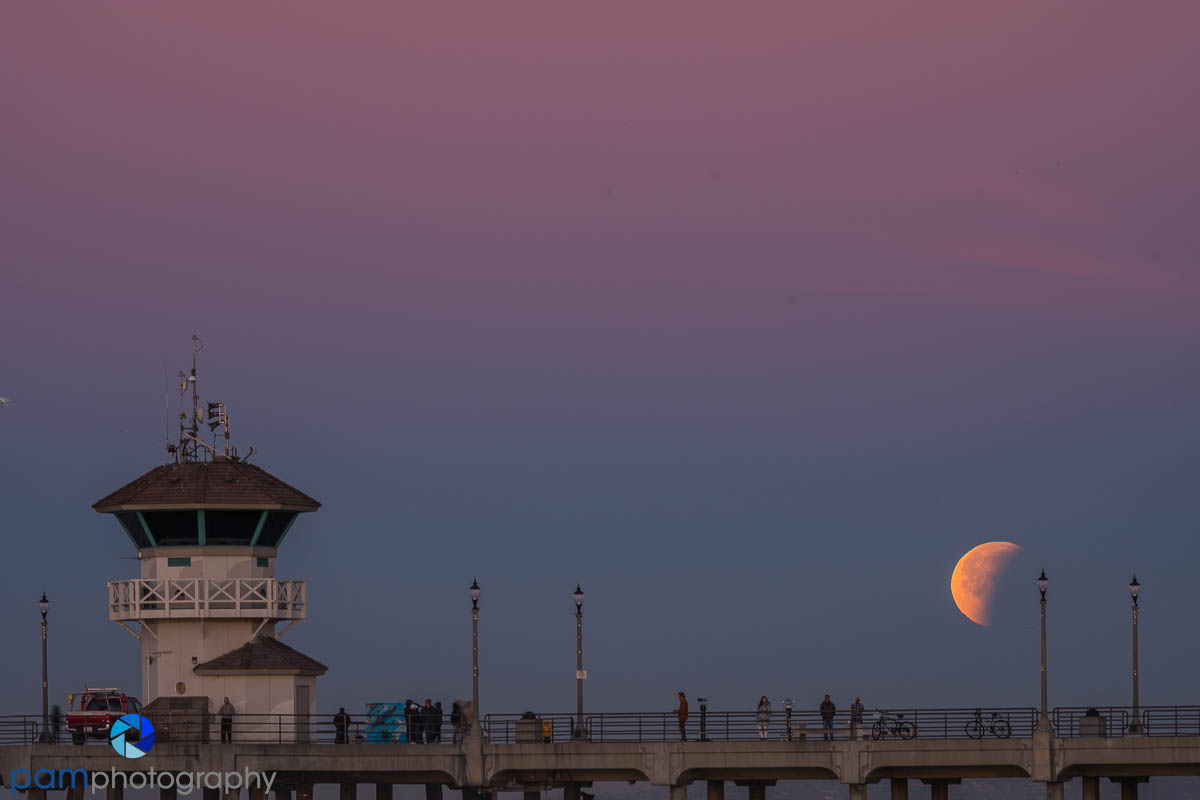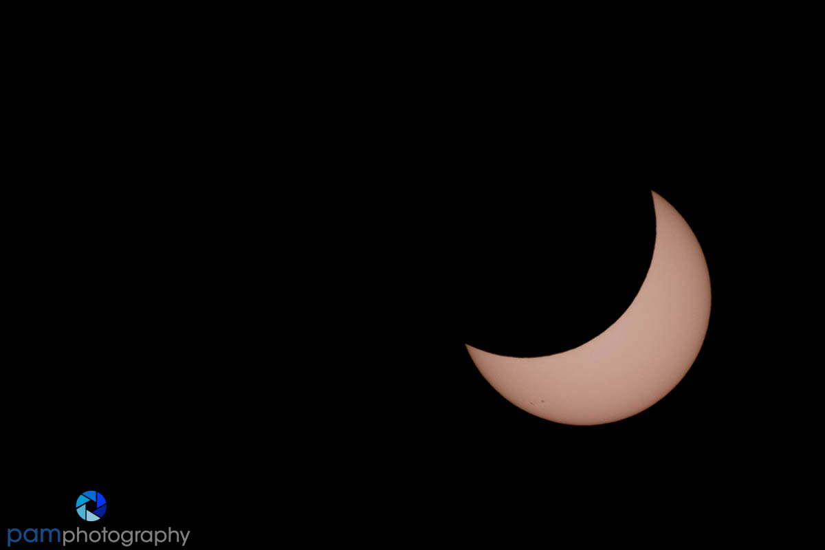 Or sometimes, the moon is the subject and you might want to use a large telephoto to capture the details that you want. When I have no good options for composition, but I still want my full moon photograph, then I will just use a 400mm lens with an extender and get up close. The first photo below is a partial solar eclipse with the moon blocking the sun. The second photo is the full lunar eclipse on January 31, 2018 that turned the moon orange,