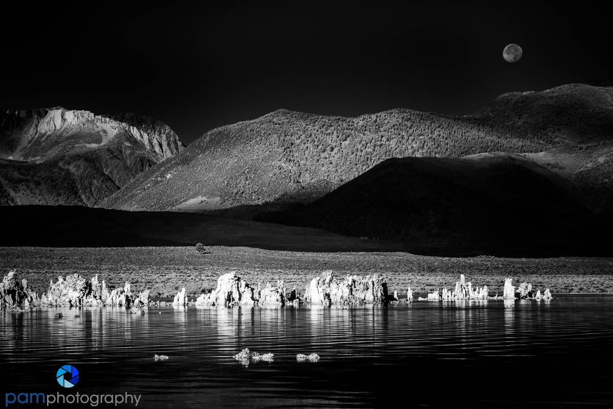I try to capture a landscape and a portrait orientation when we are in the field and then decide what is best while processing. It’s pretty straight forward using Lightroom, PhotoShop, Silver Efex Pro and Color Efex Pro. My favorite moon photos tend to be morning moon sets and either wide angle with great sunrise skies or zooming in with a telephoto and compressing the moon and foreground to make the moon appear very large in the final photo.