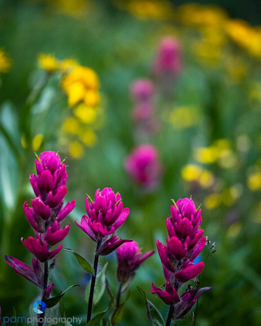 I was starting to get frustrated photographing here. I saw wildflowers in every color you could imagine…..all over the place. But I wasn’t able to capture the beauty of the setting. After 2 hours, we headed back to the car, and I just happened to stop at this small patch on the trail. I set my tripod down (in the mud – instead of setting it up and using it – good grief), and started working with these bright red flowers. This is one of my favorite photos from the morning.