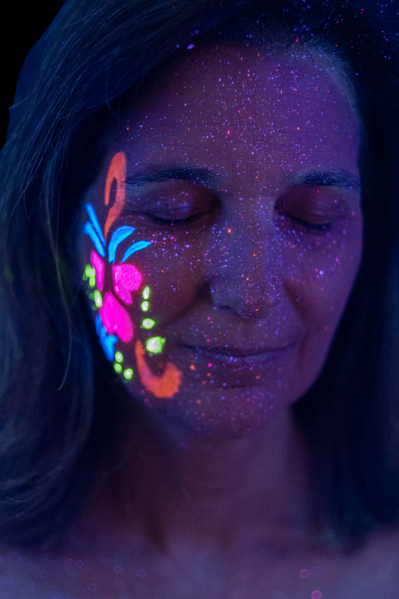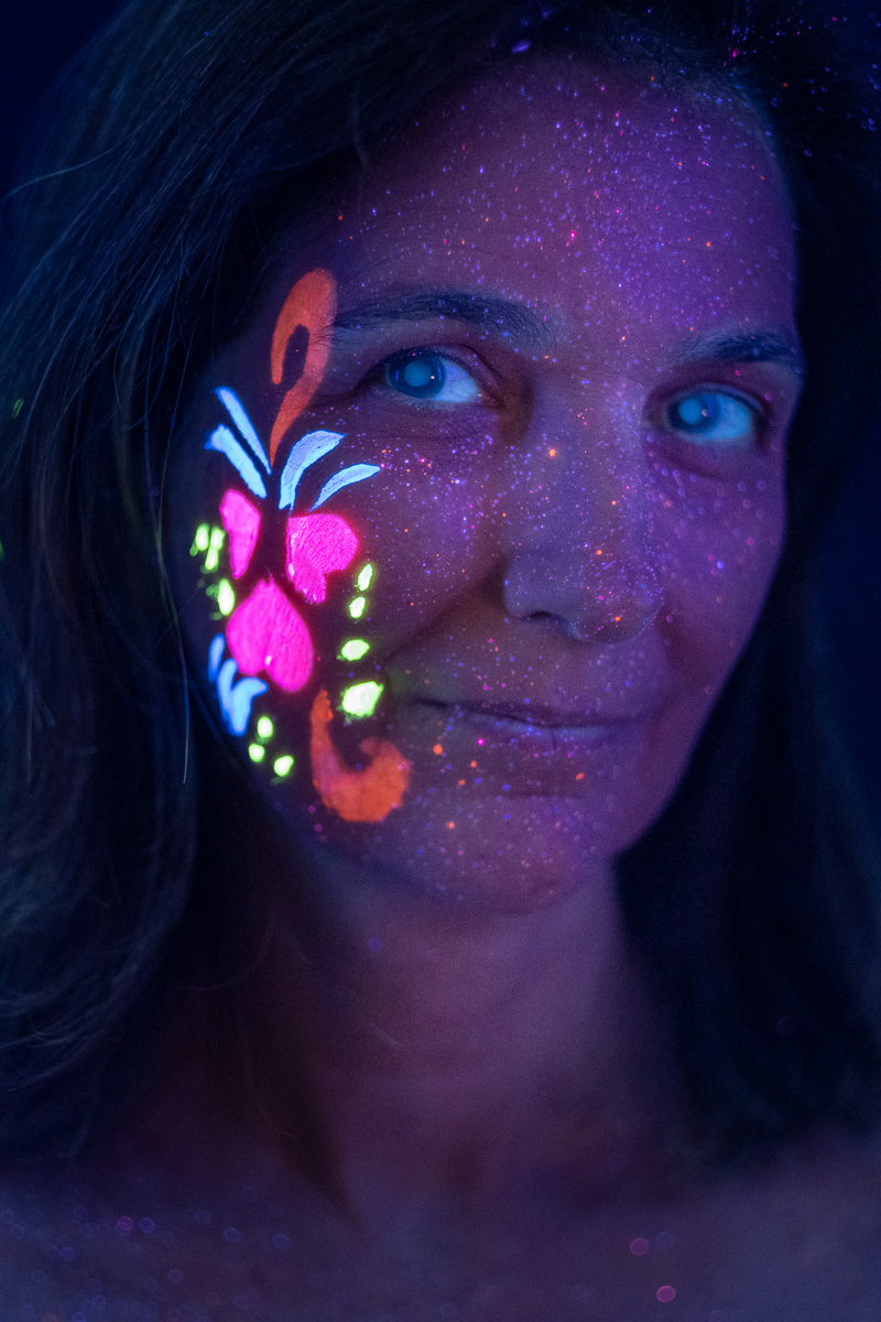 As with most of our experimental photography projects, we jumped right in without realizing how challenging Blacklight/UVA portrait photography can be. While we are still in the “beginner” stage of figuring it out, we thought we would share some tips and lessons learned from our first project.