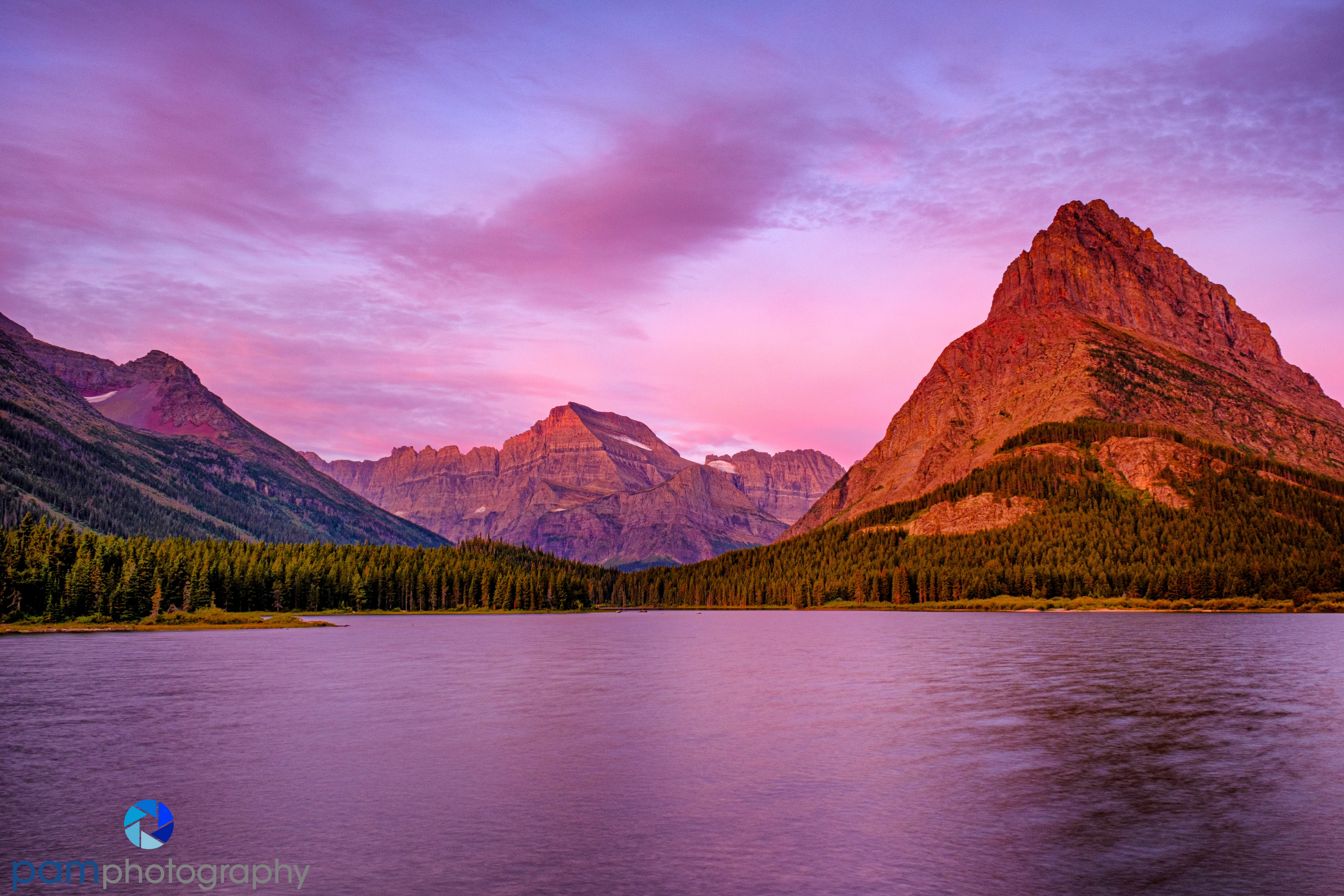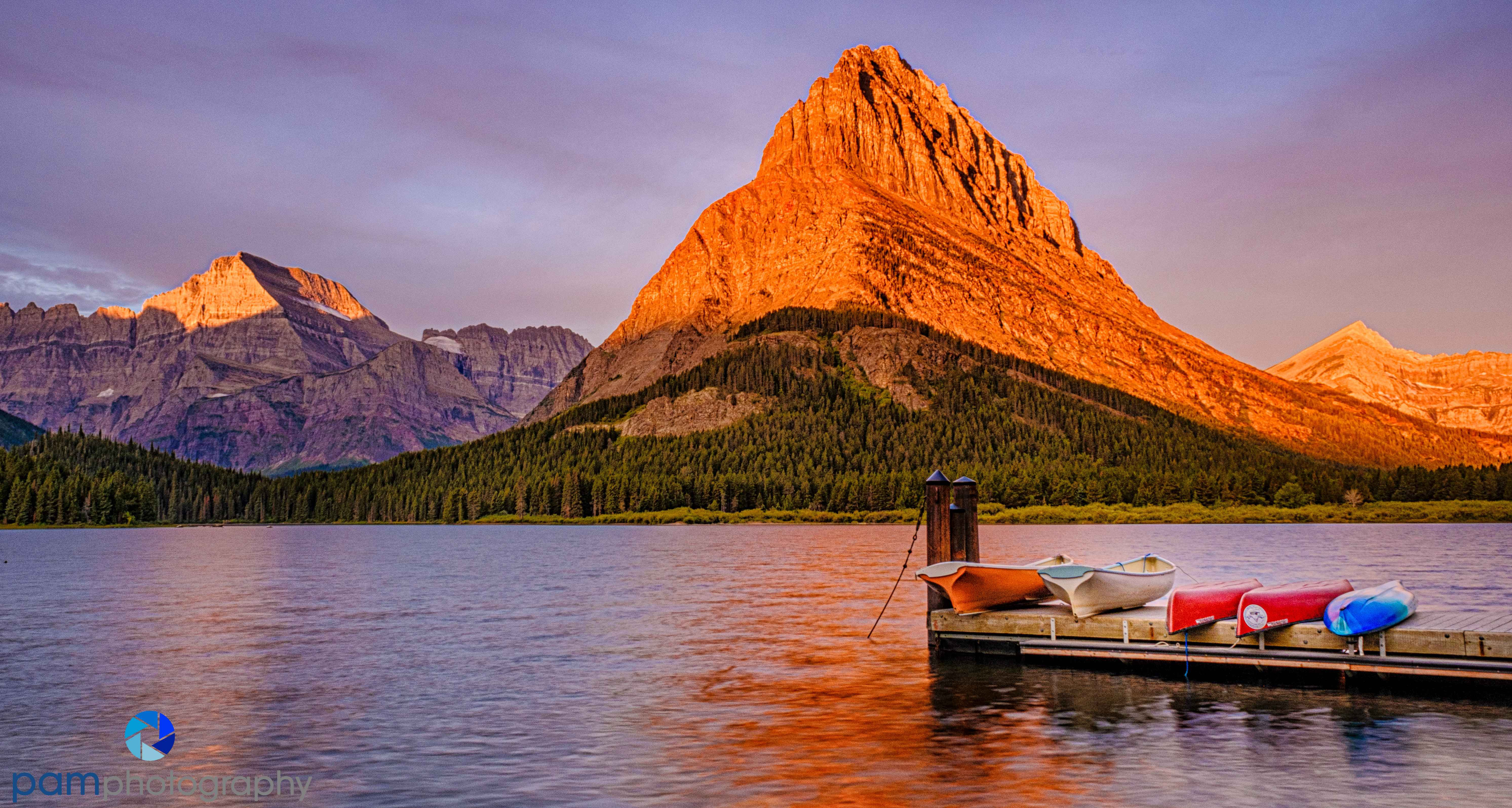 Many Glacier Hotel sits right on Swiftcurrent Lake which makes it very convenient to photograph sunrise and sunset here. Both are good. The hotel is quite nice with newer comfortable rooms. There was food, but the pandemic procedures only allowed take out. Be warned, the parking lot is above the hotel and gives you a great view, but walking up and down 5 flights of stairs in altitude is hard, but it is a good preparation for your hiking lungs.