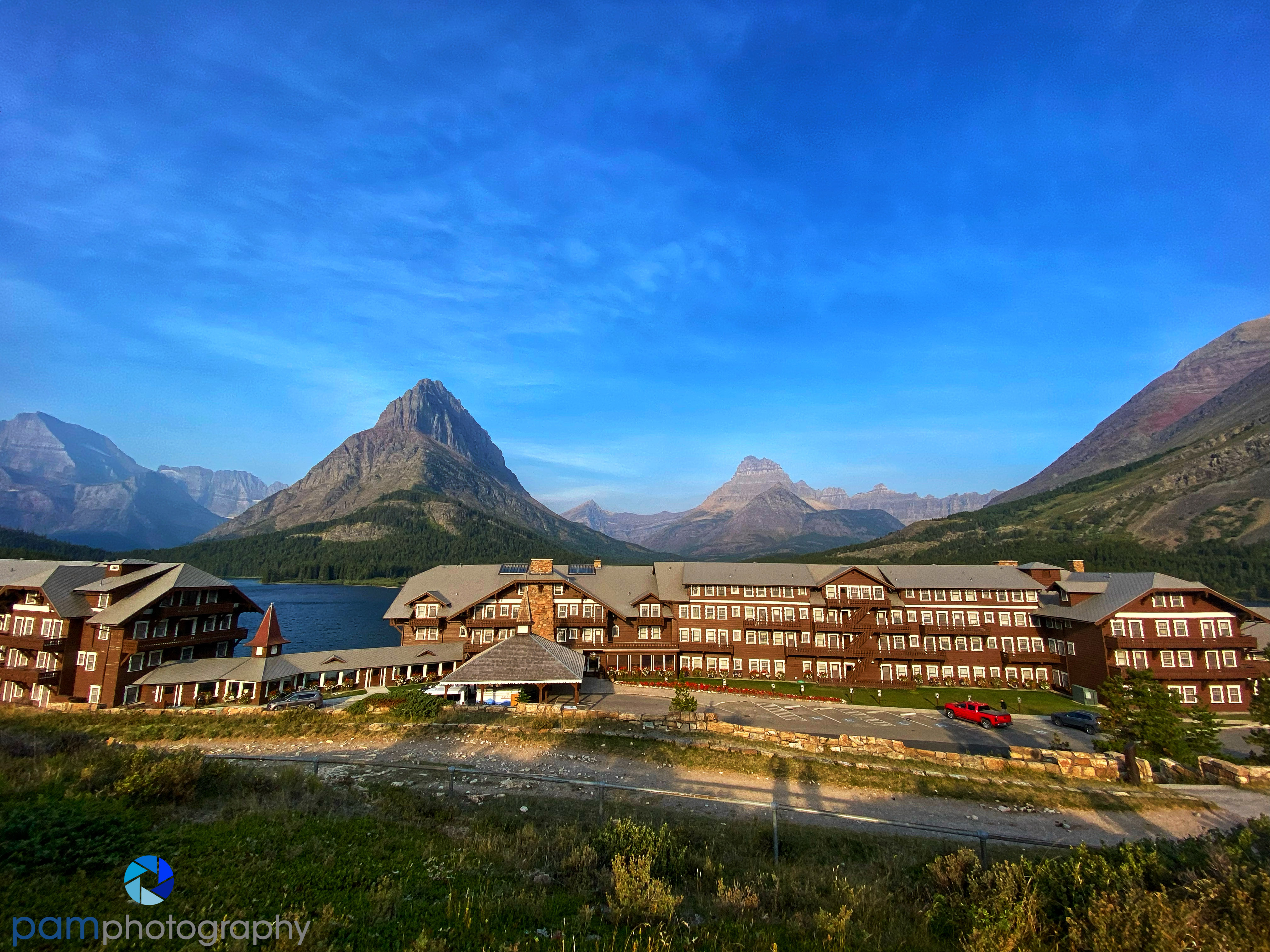 Many Glacier Hotel sits right on Swiftcurrent Lake which makes it very convenient to photograph sunrise and sunset here. Both are good. The hotel is quite nice with newer comfortable rooms. There was food, but the pandemic procedures only allowed take out. Be warned, the parking lot is above the hotel and gives you a great view, but walking up and down 5 flights of stairs in altitude is hard, but it is a good preparation for your hiking lungs.