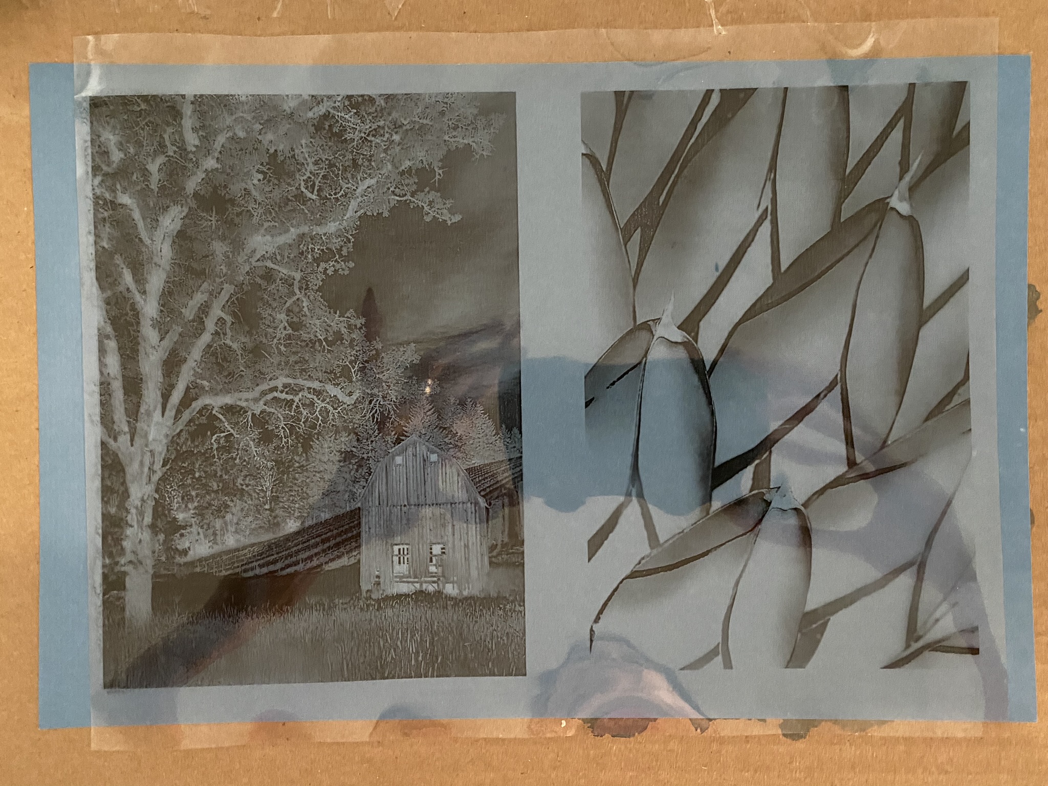 A few months ago I dove down a new rabbit hole to explore alternative processes and treatments for my photographs. It started with photo encaustic (more on that in the future), then morphed into cold wax and oil applications to my images (another later installment), then I thought I would try Sunprints (today’s post) as a treatment to apply to my photo encaustic work, and now I’m burrowing even deeper to cyanotype printing (who knows when I will be in a place to share that). So today, I’m starting with Sunprints. Its addictive and fun to do with anyone, photographer or not, young or old, the only requirement is a “what about” attitude. When I first ran across Cyanotypes years ago, I thought it was too hard and “why would I”? Don’t be intimidated by the chemicals, its not as hard as it looks (well, I haven’t quite cracked the “creating a digital negative” part, so I might amend this statement later).